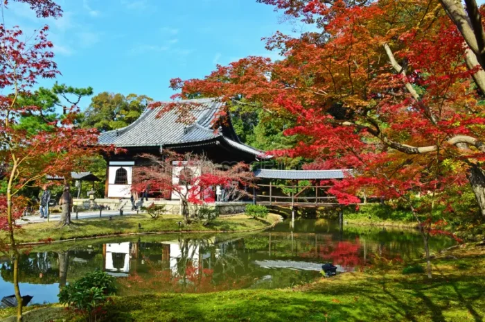 Kodai-ji Temple is known for its intimate size and refined beauty, making it a favorite for travelers seeking a more romantic autumn experience. Its landscaped gardens, ponds, and bamboo grove feel especially atmospheric when framed by fall colors.